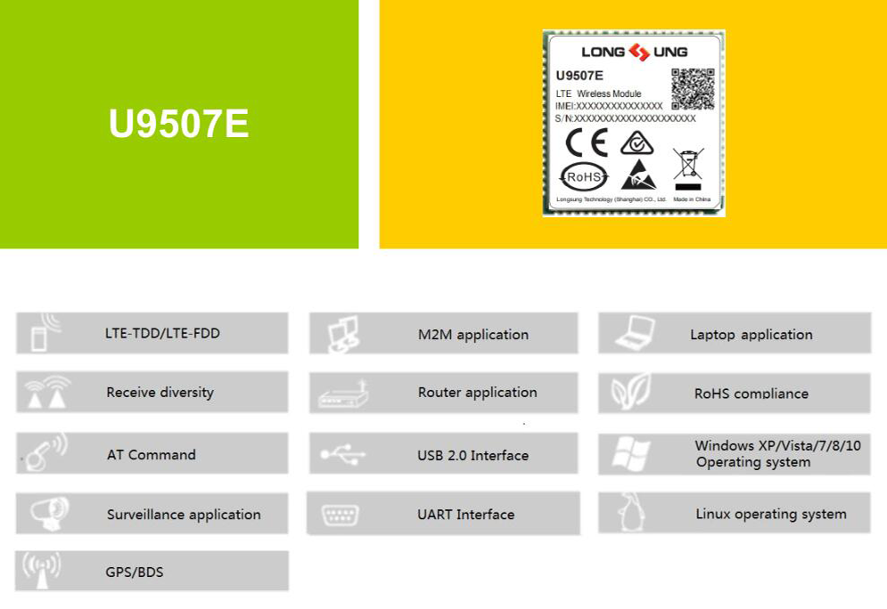 U9507E is a new generation of Longsung LTE wireless module, rich of Internet protocols, and standard